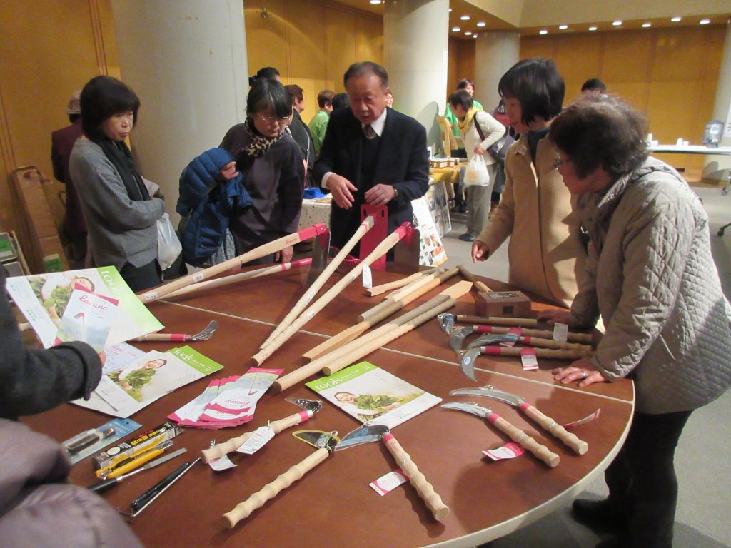 参加者からは、「やはり実物を見たほうが印象に残る」、「草刈機の刃がピンクで形もハートで可愛い」、「鎌と鍬は男性でも握りやすくて良い」などのご意見をいただきました。カネコ総業さんは会場でLacunoシリーズの注文を受け付けたのですが、注文が殺到していました。